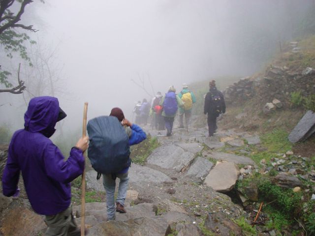 今日でトレッキングも終わりポカラへ帰る、えらい霧の中ナヤプル目指してガントルックを出発。