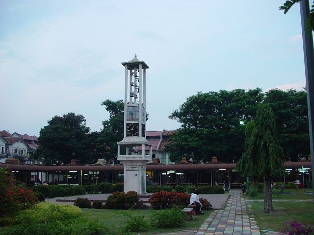 | イポーの公園?にあった時計台、からくり時計なんだけど4面にある時計の時刻が全てバラバラ | |