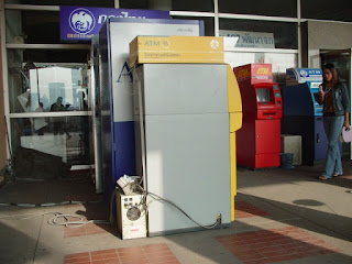 日本じゃ重機で無理やり持ち去るけどここじゃ手押し車で十分だね、見たとこ床に固定もされていないし、昔タイ人に何でタイに自動販売機がないんだって聞いたら、そんなもの道端に置いといたらそれごと持っていかれちゃうって返事だったけど。