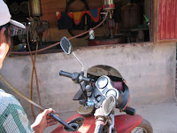 | チャンパーサックで雇ったバイクタクシーでワット・プーへ |