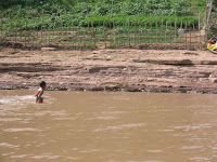 | ラオスを監視(?)するタイの兵隊、ラオスに入ってタイを振り返る |