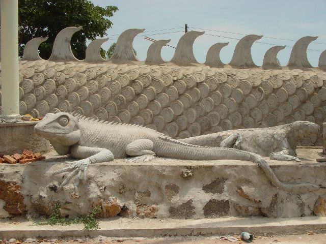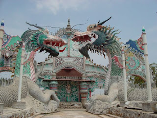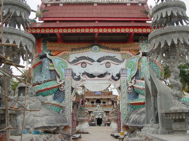 ノンカイにサーケーオクーというお寺があってホームページなどで「おばか寺」などと書かれている事があるくらい妙なお寺なのだがそれにまさるかも知れない、かも知れないというのは今はまだ建設中だしサーケーオクーに色ではもうまさっている。 |