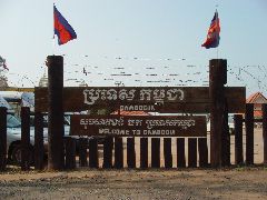 翌朝、荷物をまとめてホテルを出る、国境にホテルがあれば泊まろうと思ったからだ。 タイ側には全く何もないが、カンボジア側には真っ直ぐな道(と言っても舗装もされていないが)の両脇には立派な建物があってなんだらリゾートなんて書いてある、カジノがあってホテルもあるって事だ。 |