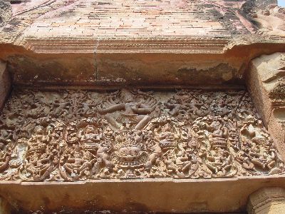 上記サ・カンペン・ノーイ遺跡と同じような規模でこちらの方がいいかもしれない、期待していたわけではないからがっかりもしない、地図を見て地図といっても絵みたいなやつなので距離もよくわからないがヤソートン方面にお寺があるのでそちらへ向かう、20Km程行った右にお寺の案内がある、先回と以前にもロイエット・ヤソートン間をバスで通った事がありこの看板と言うには大きく妙な建造物は気になっていたがまさかそれだったとは思わなかった。 |