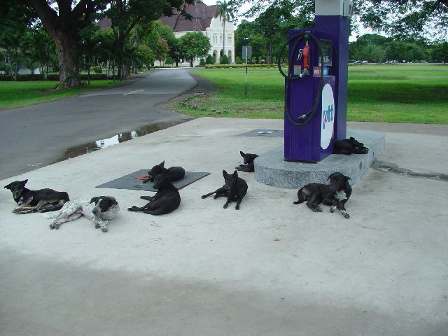 ペブリの歴史公園周りにはサルも多いが街には犬が多いことにビックリ、この写真撮影直後に一斉に吠えられマジびびった。 |