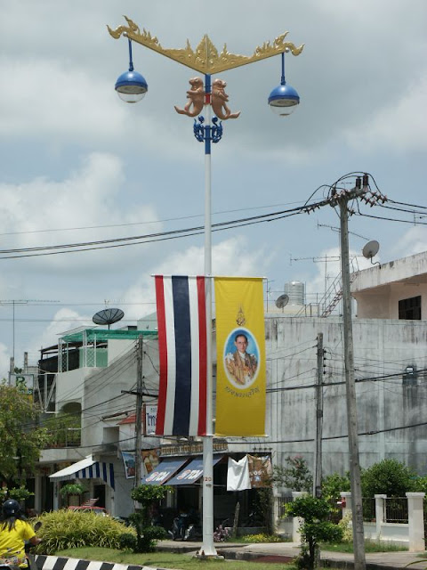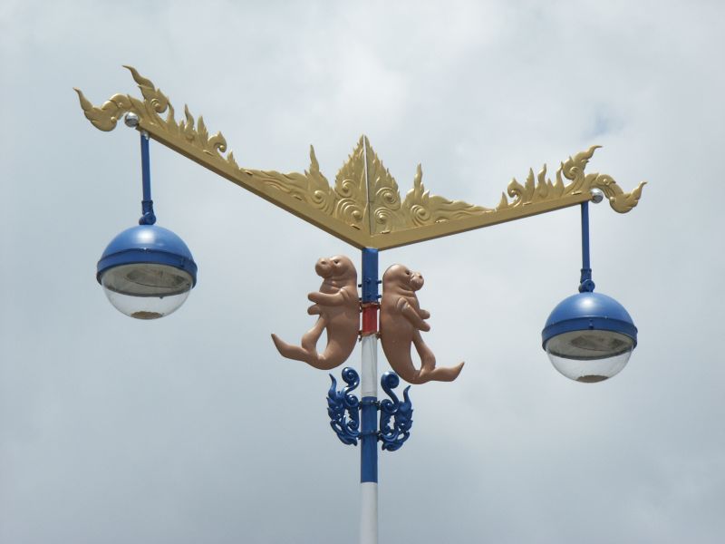 今日は日帰りでカラシン県のクチナライという所へ行く、理由は左の写真。こんな街灯がバスの窓から見えたのだ、タイには県によっては変わった街灯がある。 その中でもこれは変わっているだろう。 写真は「カラシンの街灯」 にあります。 |