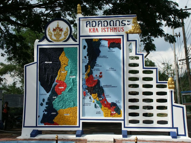 へ向かう、まずはチュンポンまで、そこからソンテオで1時間程でクラブリ到着、小さな町なので一周してマレー半島の一番狭まるクラ地峡へ。船が運ばれていた。 |