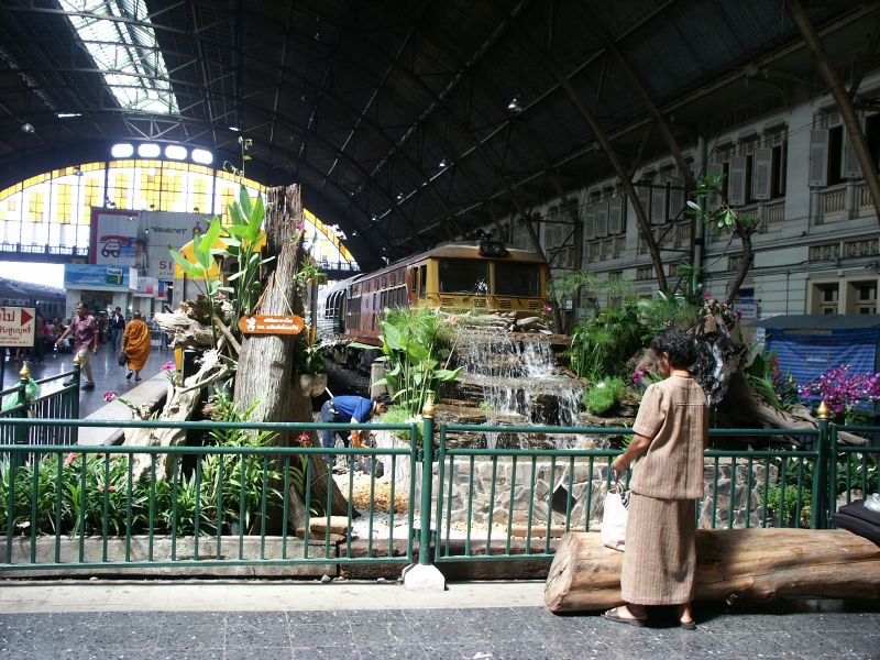 | 途中こんな物↓を見ながらホアヒンへ、ホアヒンの駅舎、王族等の別荘やらがあるので立派 |