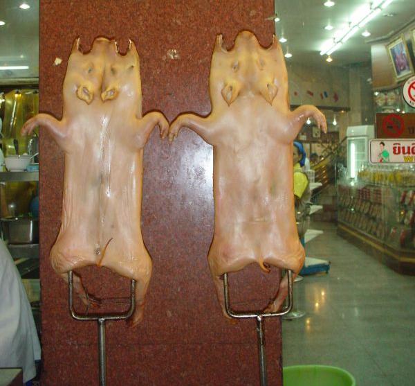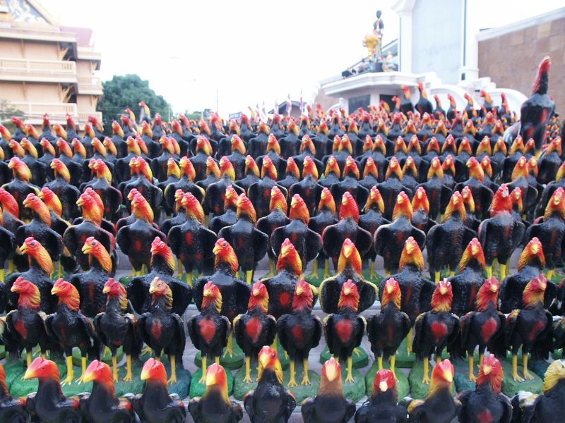 | 夜、そのホテルのそばに出現する屋台でカオモッカイを食べていたら、向かいのテーブルに年寄りフランの夫婦が来てそれぞれパッタイとナマズの焼いたのを食べているのを見て、以前タイの島でやはりフランの男2人がそれぞれ4〜50Cmはありそうな魚料理を食べていたのを思い出し笑ってしまった。 |
