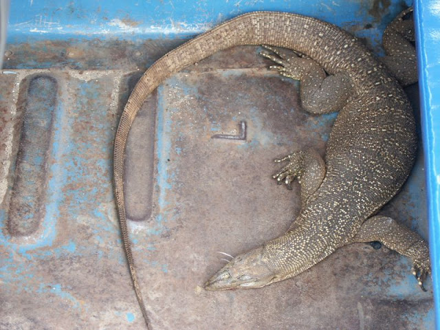 翌朝さっさとトランへ、って言っても普通バスなので4時間もかかってようやく到着、バスを降りたところにバンコクから夜行寝台で来た知り合いから電話がありトランへ到着との事、2時間遅れだそうだ。 トランで見た車のナンバープレートとトランの公園でやっていたフードフェスティバルにて焼きワニ(一串25バーツ) |