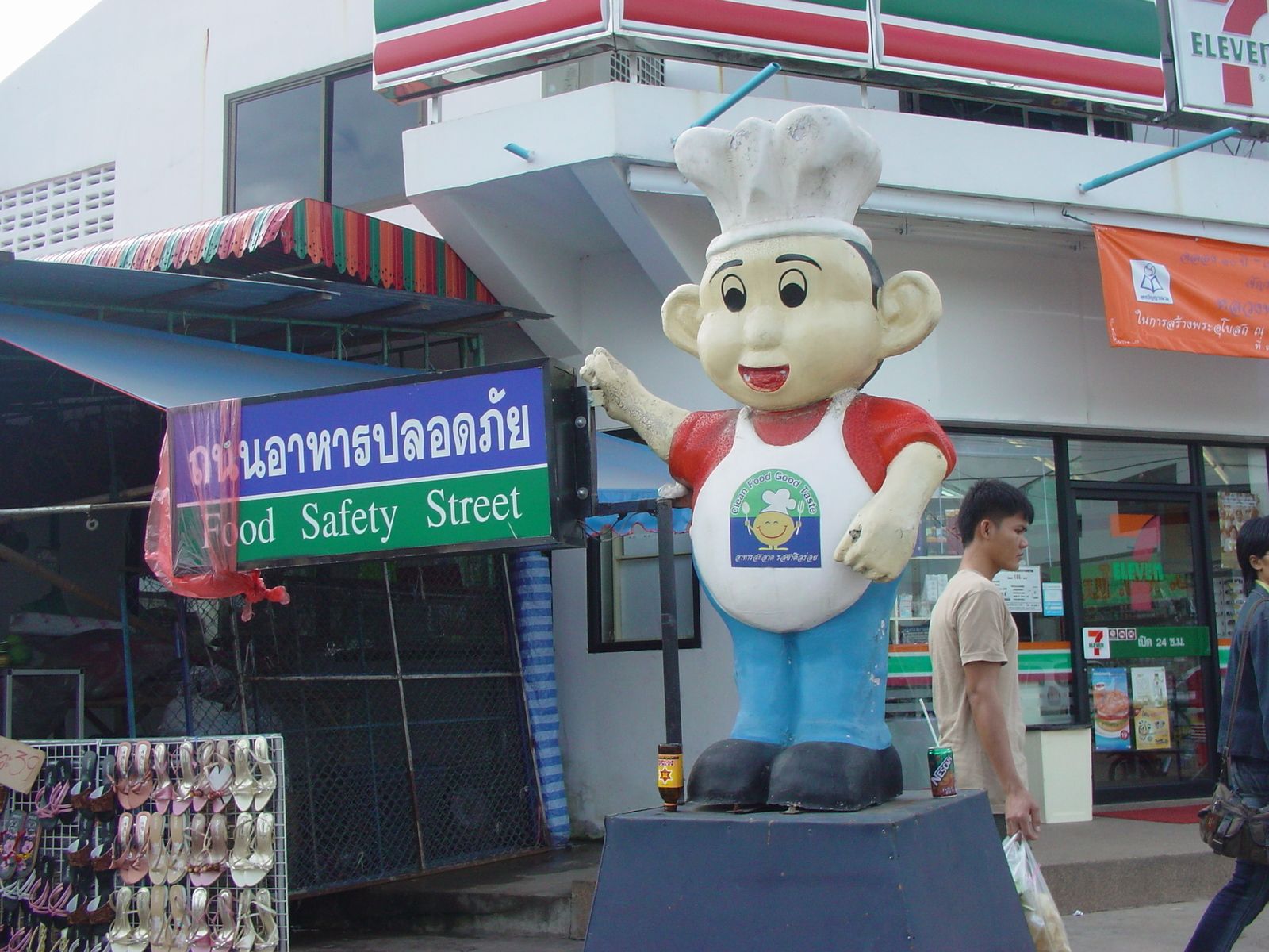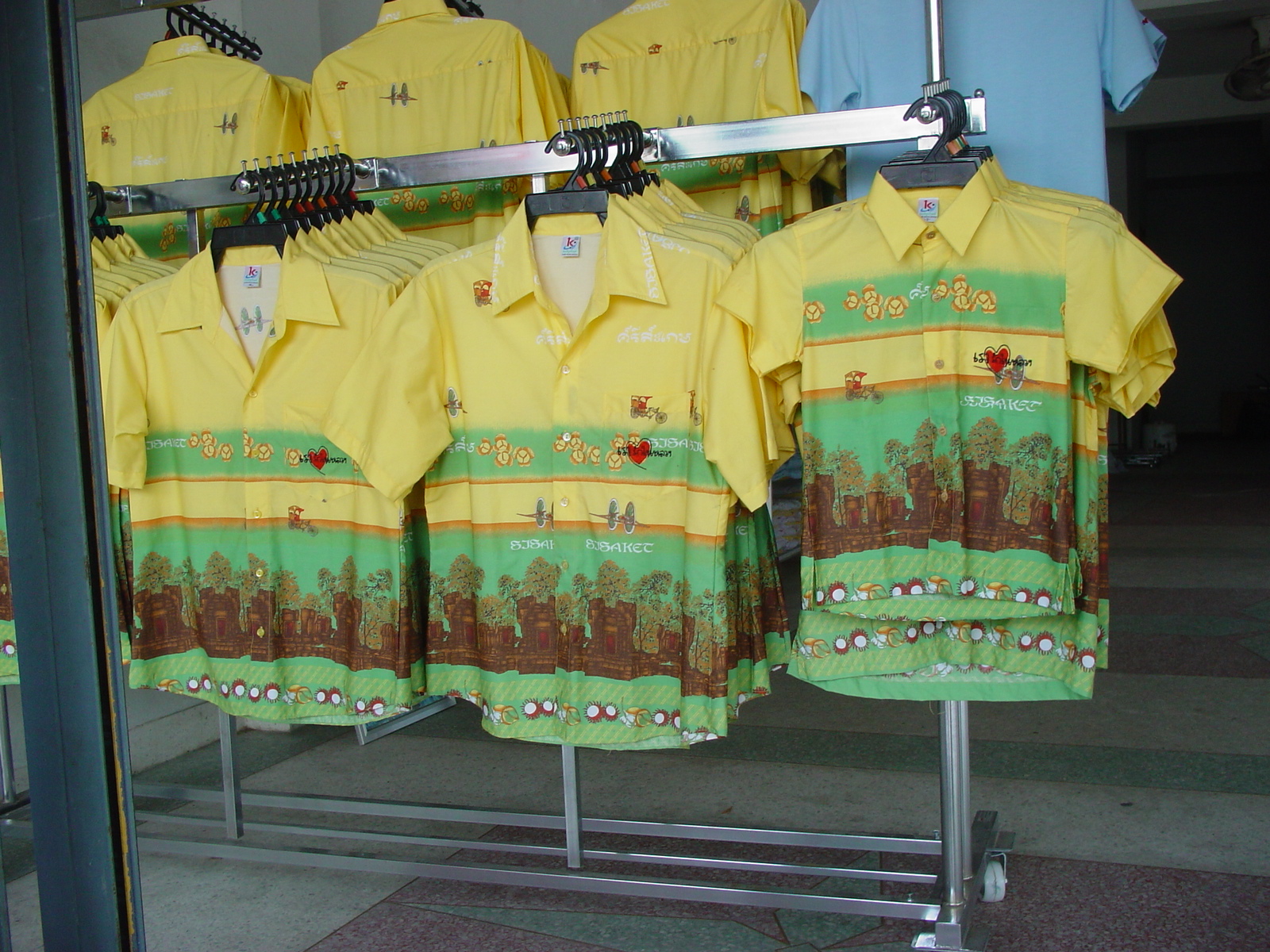 シーサケット駅前屋台街入口とシーサケット県シャツ |