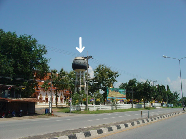 この駅が終点、ここからサタヒップの町にはソンテオで行く、サタヒップまでの道中にあったお寺の貯水タンクは托鉢の時の鉢の形をしていた。 |