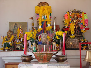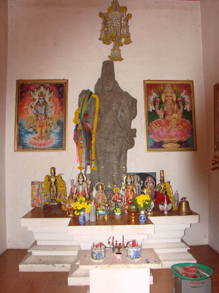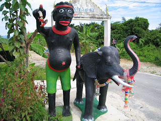 胸に大きな「ジャトカム」をぶら下げていたのにはなぜだか笑っちゃいました(ゴメンナサイ)。 ナコンシータマラート市街に入る手前にあった小さなお寺の入り口にあった像。 |
