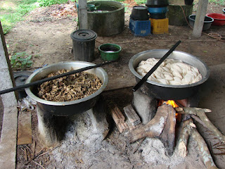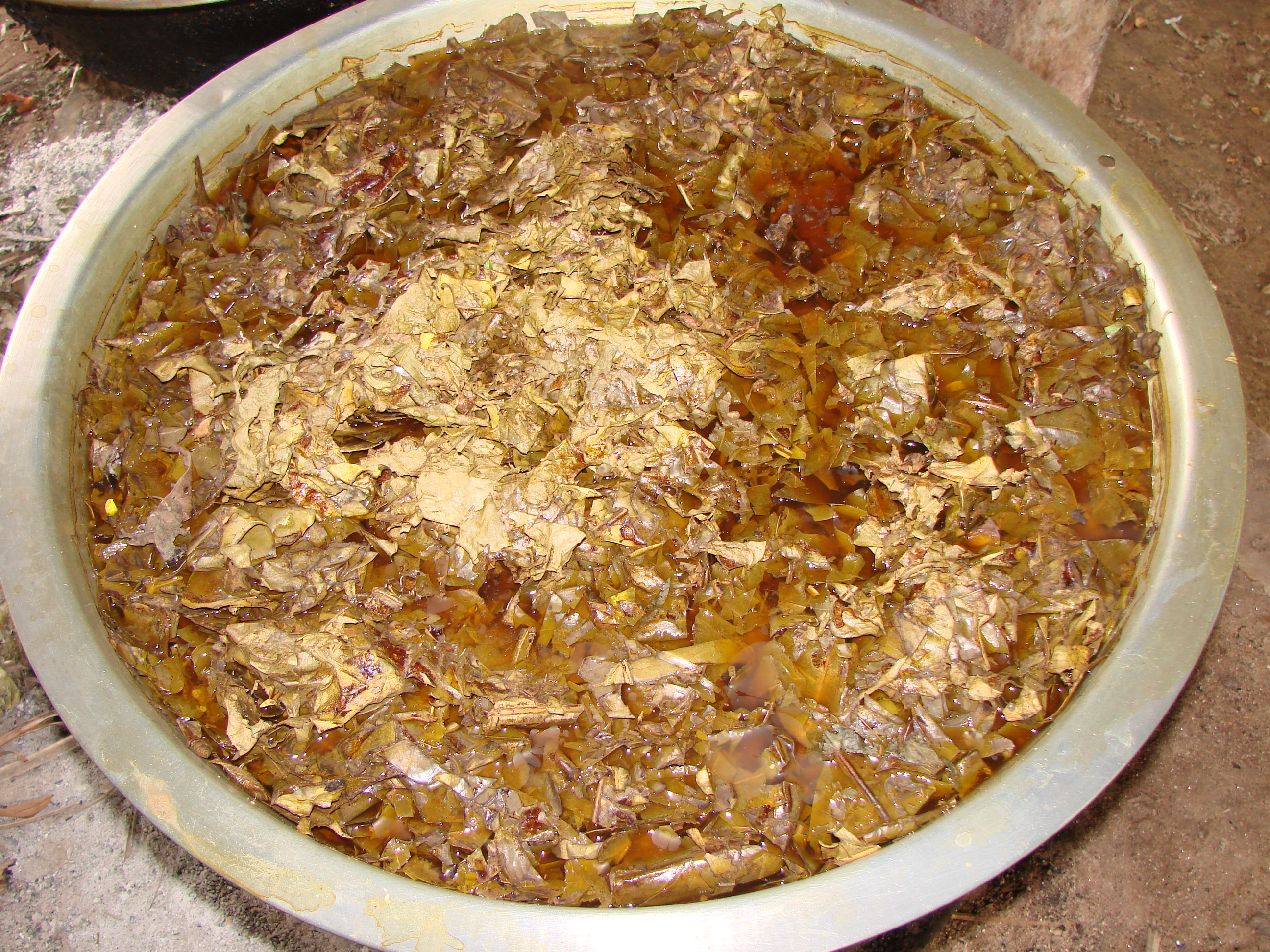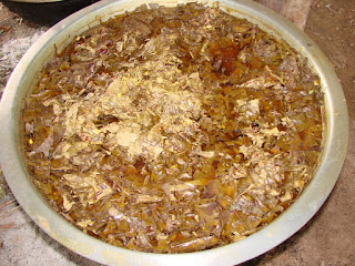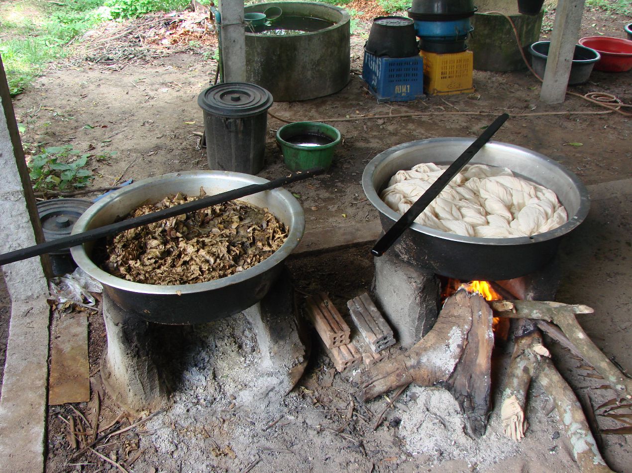 またここでは果物などを使って染色された棉製品でも有名な所で下の写真のような染色作業なども見られる。 |