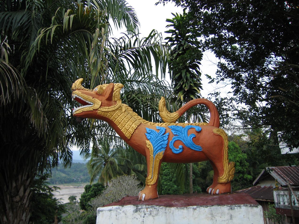 お寺の入口で吼えてた狛犬(?)何となくタイのお寺とは雰囲気が違う。