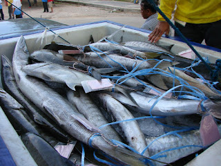 | 競技会は午後4時終了なので3時を過ぎると続々と競技者達が帰ってくる、釣った魚を本部に運び魚種と重さをチェック。 |