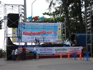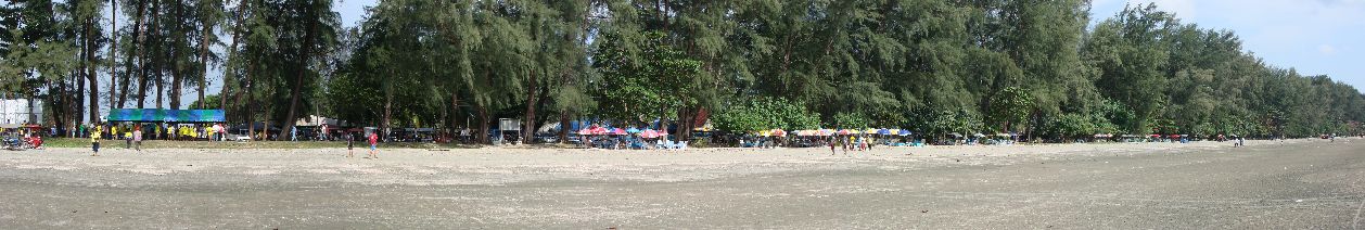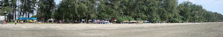 | パノラマ写真左のブルーのテントが釣り競技会本部、チョット前まではこんなパラソルなどなかったのに、休日にはかなりの人で賑わうようになった。 |