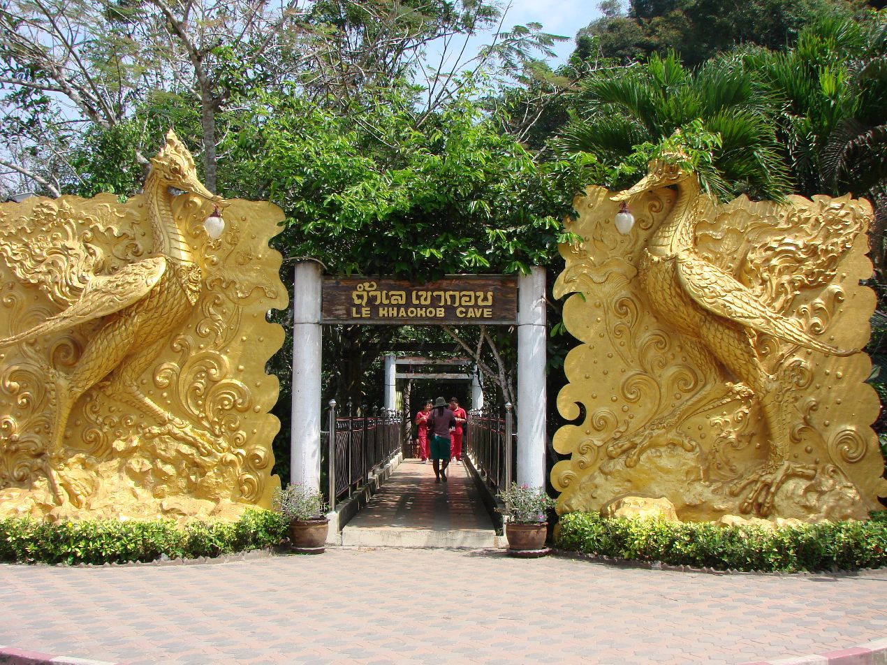 | トランから4号線で北上するとホァイヨートに、4号線はここから西へ進路を変えクラビへ至る 、その途中を左に入った所にある洞窟へ寄ってみた、2006年に来た時にはなかった金ぴかの門が出来ていた、写真はここを参照。 |