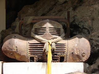 上記の洞窟からクラビ方面へ行った左にこのカーオピナ洞窟寺院がある、別に変わったものがあるわけではないが、洞窟への階段を上がった所に「ダッジ」の朽ち果てたフロントが祭られて(?)いる、洞窟内の階段を上って行くと「垂れ目」の仏像があった、タイのピカソが作成したらしい。 もっと写真が見たい人はここ |