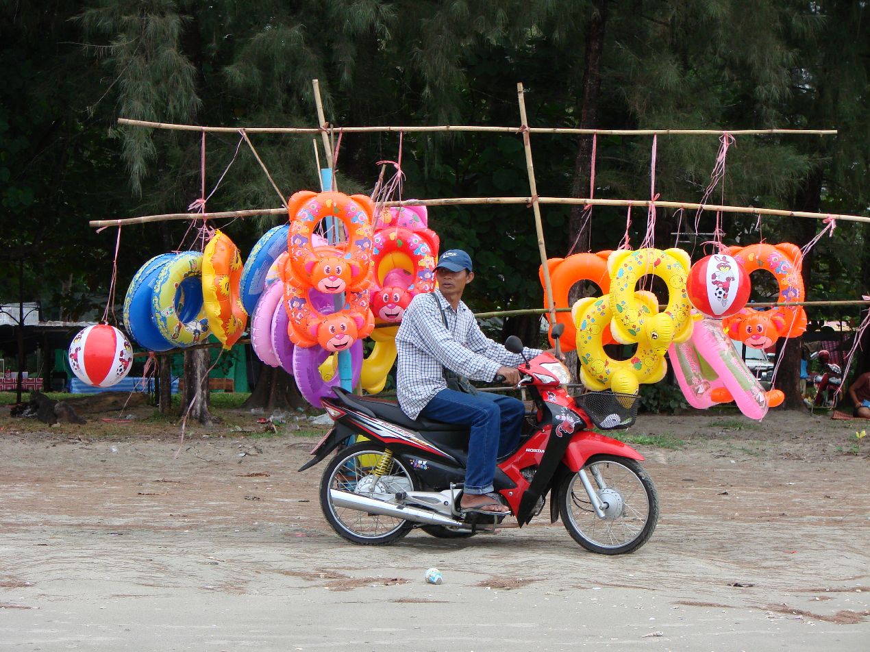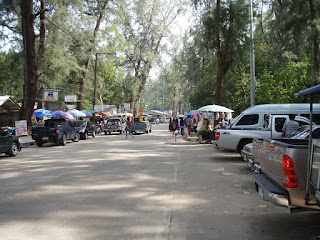 時々小雨がパラつく天気だが、パクメンには今まで見た事もない程の車と人がいた、と言っても日本の海水浴場と比べたらがらすきだが。 |