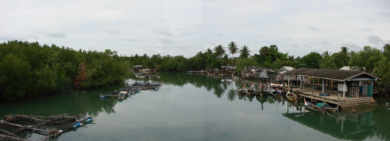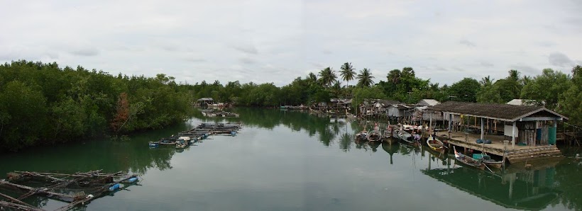 目が覚めて時計を見たら、一時間近く寝ていたようだ、小雨になったとはいえまだ無理、日本でもバイクに乗っていたがパンクした事はない、ここでは年に3〜4回はあると思う、たしか4日前だかに前輪のパンク修理をしたばかりだ、しかし今回はアッという間に空気が抜けてしまったのでチューブ交換だろうと予想していたのが的中、修理代80バーツ(250円くらいか)。 パンクも直りとろとろとホアヒン海岸を目指す、途中こんな漁村なんかもあったりする。 |
