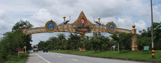 (8日)になって雲はあるものの良い天気だ。 年末年始とバイクで毎日のように県内をウロウロしていたが、今日はハジャイに行く事にした、行きには気付かなかったが、ソンクラー県とパタルン県の県境にはこんな門が出来ていた。 |