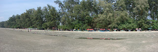 | パクメン海岸の手前にある海洋技術大学(?)の構内にある海岸にも行ってみた、ここもやはりテントや車、観光バスまで止まっていた、この海岸への道路の両側はマングローブの林だったりする、そこに木で出来た遊歩道のようなものがあるのに気付いた、まだペンキの匂いがする、マングローブの林には簡単に分け入るってわけには行かないので入ってみた、写真のような道が延々と続いているだけ。 |