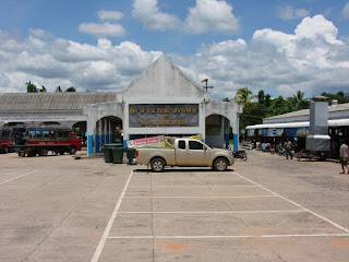 | ローソク祭りも終わり、ここの周辺で行く予定の場所はケマラートの「ラクムアン」とコンチアムにある「タイ最東端の碑」。 どう巡るか観光局でもらったタイ語の地図を見ていると、ウボンの南、タイ・ラオス・カンボジアが接するあたりにイミグレーションのマークがある、そんな所にイミグレがあるとは聞いたことがないので、英語の地図を見てみると、Chong Bok(Emerald Triangle)とありイミグレのマークはない、タイ人は行き来出来るが外国人は出来ないので記載されていないらしい。 面白そうだが地図には道がない、ホテルのアンチャン達もチョンボックは知っていたが行ったやつはいない、多分不便な所だろうから今回は見送り、明日バスターミナルへ行ってバスの都合でケマラートかコンチアムにすることにする。 翌日バスターミナルへ行くと昨夜見たエメラルド・トライアングルの途中にある町行き(Det Udom)のバスが目に入った、近寄ってそこにいた人にチョンボックへの 行き方などを尋ねてみた、ウボンからDet Udomへ行きそこでNa Chaluai行きに乗り換えるんだそうでその先は定期の乗り物はないらしい、途中の町(Det Udom・Na Chaluai)に宿泊施設はあるとの事。 急遽予定変更 エメラルド・トライアングルへGO!! | ||