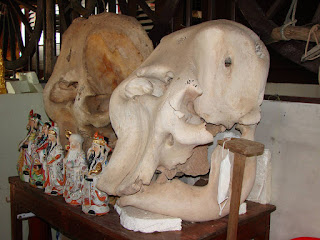 川べりのお寺には象の頭蓋骨が。![]() | ||