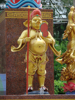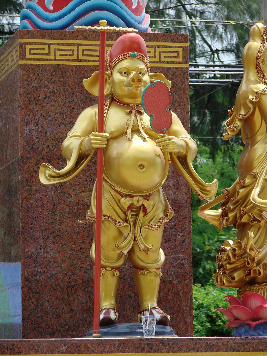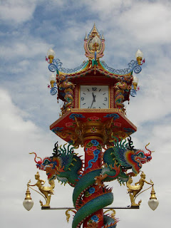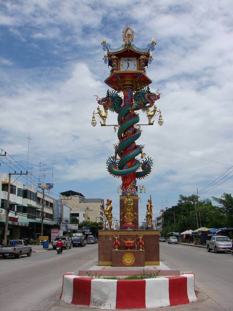 イサーンに行く途中サラブリのバスターミナルに入る道路に時計台が出来ているのがバスから見えた、形もユニークだし、タイは保守管理が悪いのですぐに汚くなったり、壊れたりするので早いとこ写真に撮ろうと列車で往復。 台座の部分には西遊記かな、 4体の像が配置されている。 | ||