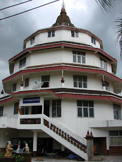 | ウボンではホテルが取れないなどと言われてきたのだけれど、全くそのような事もなかった、もしホテルが取れないようならウボンの東のコンチアムという所へ行くつもりだった 、あっけなくホテルも決まってしまいやることもないので市内を見物する事にする、と言ってもお寺ぐらいしかないようだが。 何ヵ所か見たお寺の中ではこのお寺がちょっと面白いか った、政府観光局の前の通りを博物館と反対方向へ行き右側にあったお寺。 | ||