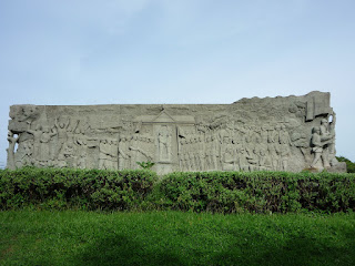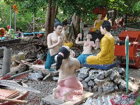 | ここは遺跡(チェディー)の周りのレリーフ(って言うのかな)がユニーク、周りの木が切り倒されていたので整備されるらしい。 |