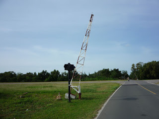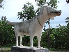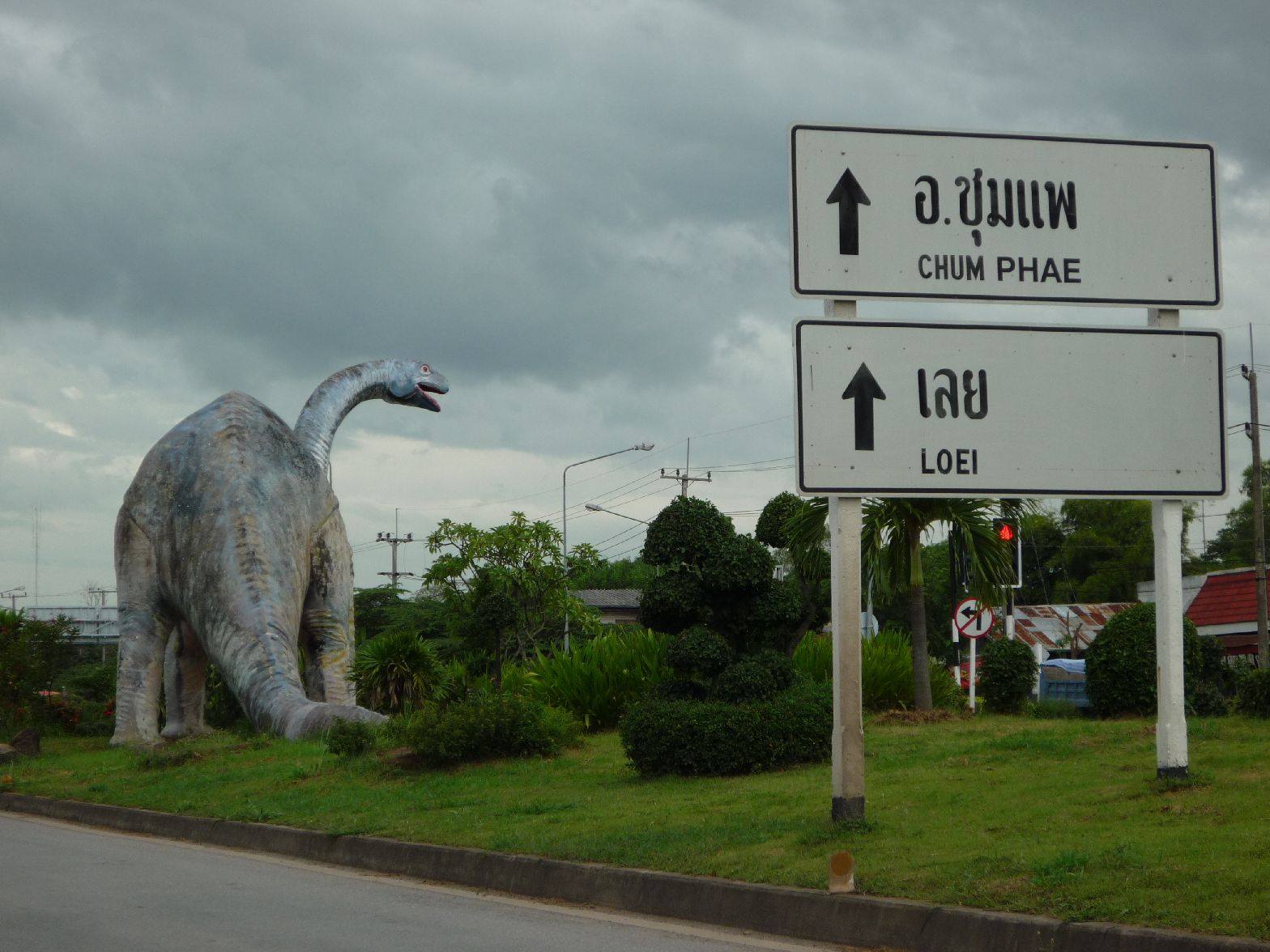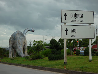 | コンケンから西へ向かう12号線にいた恐竜、12号線と201号線の交差点にいたフクロウ |