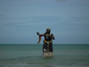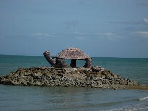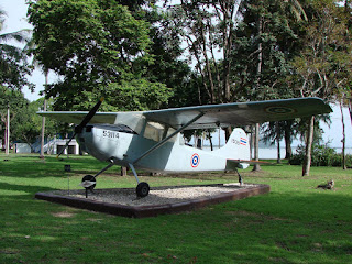 パチュアップキリカンの町の南に軍の飛行場がある、そしてその敷地内に「アオ・マナオ(マナオ湾)」があって、きれいなビーチで海水浴が出来る、当然それなりの施設もある、軍の飛行場だが別に特別な許可も何もなく入る事が出来る、入ると古い飛行機などが置いてあって、その先に遮断機がある、そう、飛行機の離発着の時には閉まるのだ、という事は道路が滑走路を横切っているのだ、その先にマナオ湾ビーチや歴史公園がある、歴史公園には昭和16年12月8日に起こった史実の記念碑などがある、 近くの山にはサルがいたりする。 |