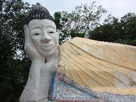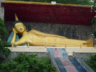 | 小さな洞窟寺院、涅槃の腕の細さと長さが異様。 |