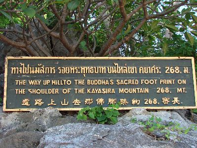 | 頂上には仏足石があるみたいなので、頑張って登る、足ガクガク、遠くに黄色い仏像が見える、帰りに寄ろうと思っていたが、即断念 |