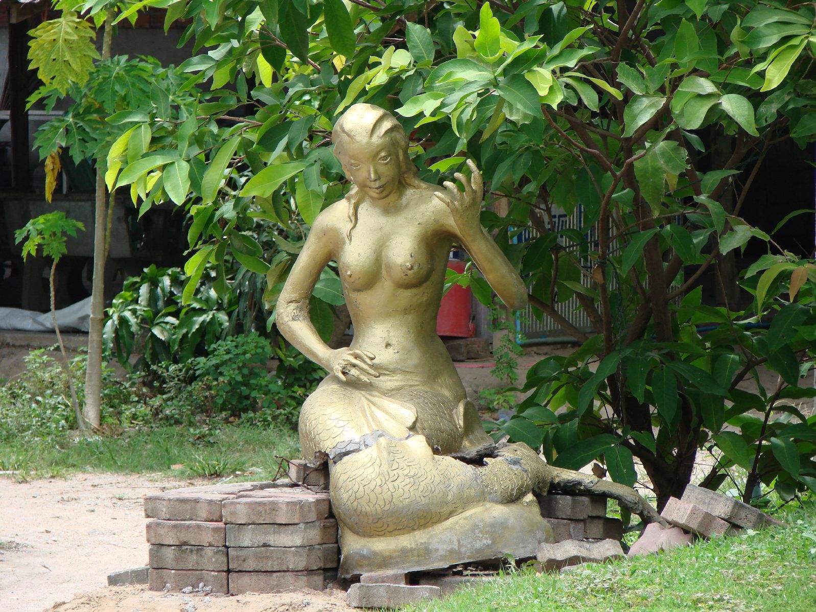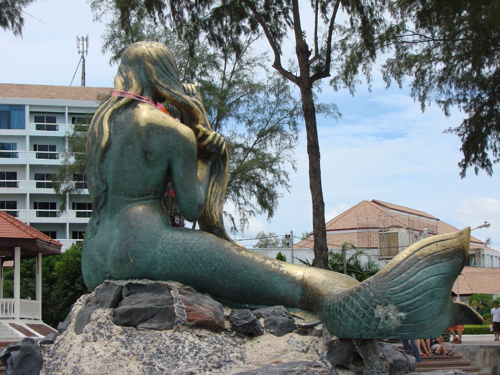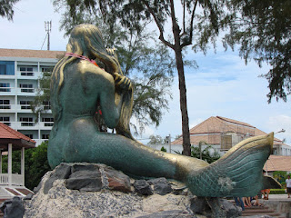 | この暑さの中、炎天下で本を読む人、人魚像 後姿見た事ある?観光案内図ももちろん人魚 |