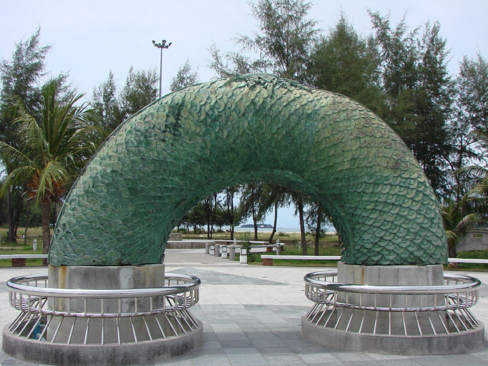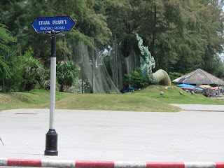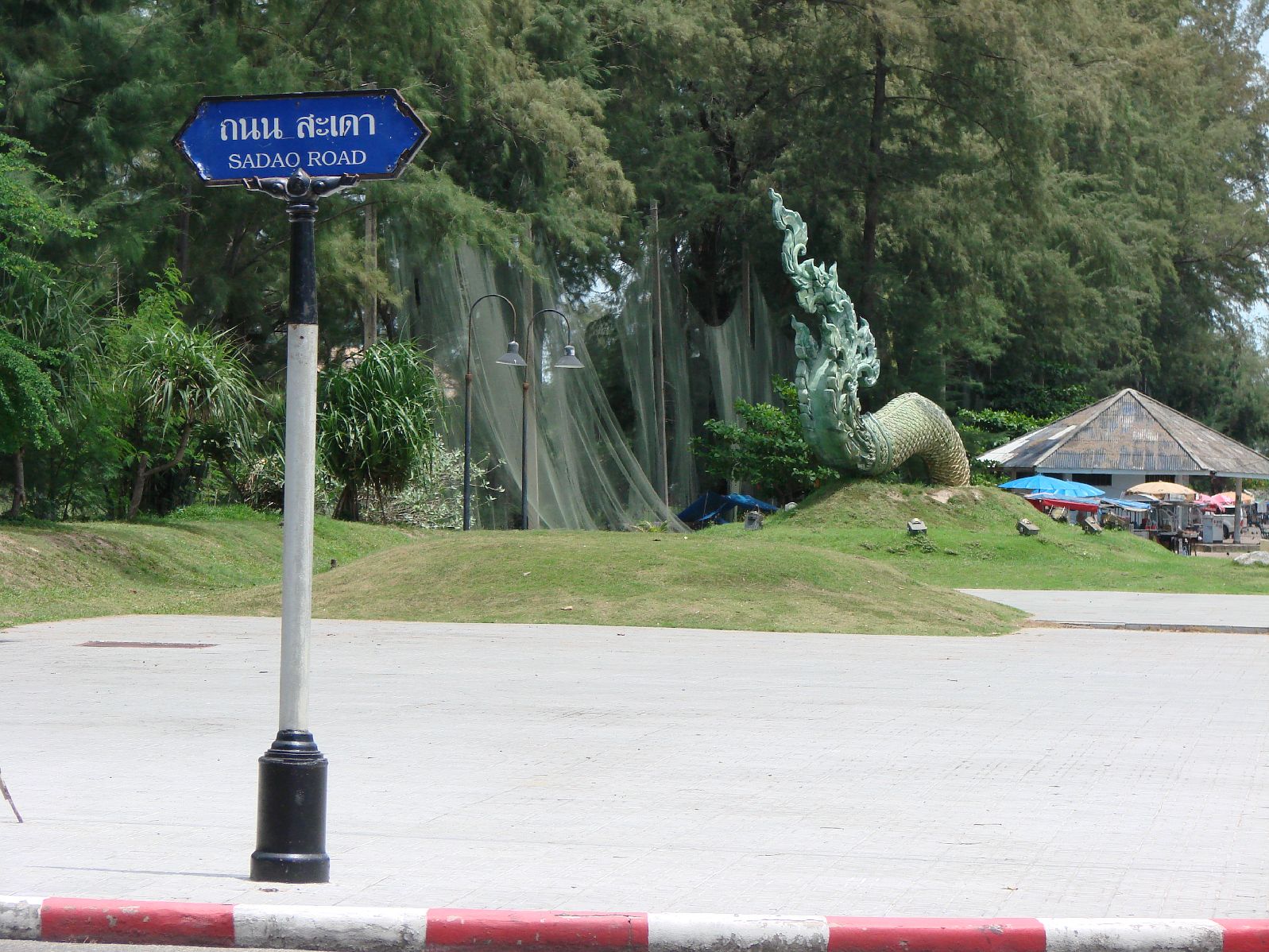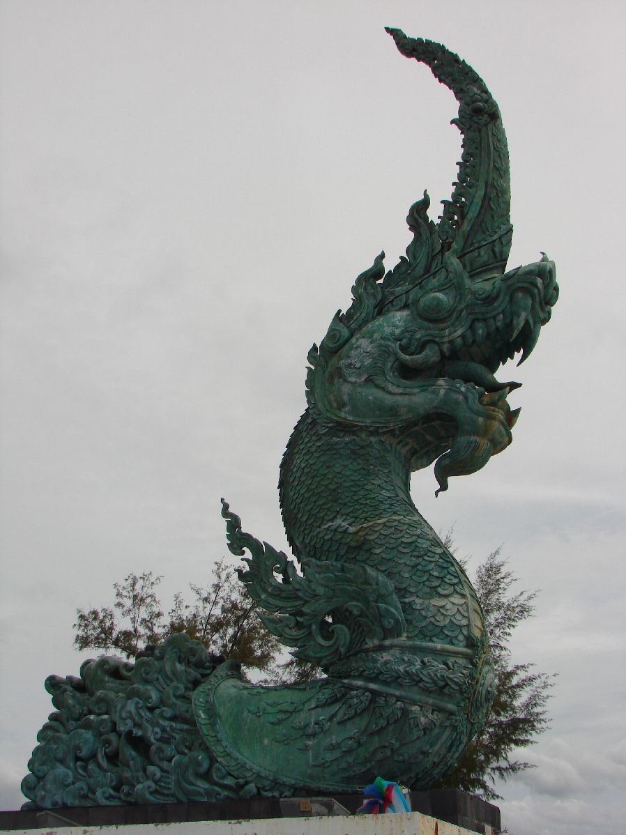 ← 新しいソンクラーの道路標識博物館傍のゲストハウスにチェックインしてシャワーを浴びて、龍を探しに街へ出る。 ここの龍もグーグルマップを見ていて見つけた物で、多分世界一長い(大きいんじゃなくて長い、大きいのはスパンブリのじゃないかなぁ、サコンナコンのもかなり長い、寺院の階段などのナーガならかなり長いのがありそう だが)、なにしろ頭からしっぽの先まで数キロあって全体像は見る事が出来ない、それに大部分が地中にあり、頭と胴体の一部と尻尾しか地上に出ていないのだ。 |