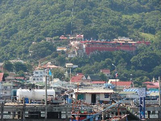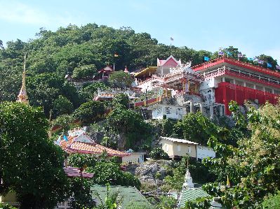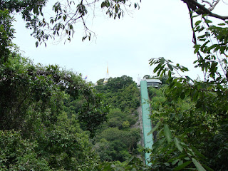 で上まで行ける、登ったことはないので、登ってみる、30バーツ。 頂上にはパゴダがあるくらいだが、眺めは良い、見えました胴体が。 |