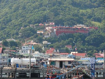 北への旅から帰ったばかりだというのにバンコクに出る事になった、今度は飛行機で。 ローイ島は陸と橋で繋がっていて島全体がローイ島公園となっているらしい、中華寺院しかないみたいだけど。 |