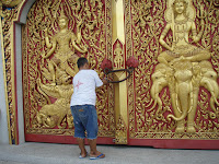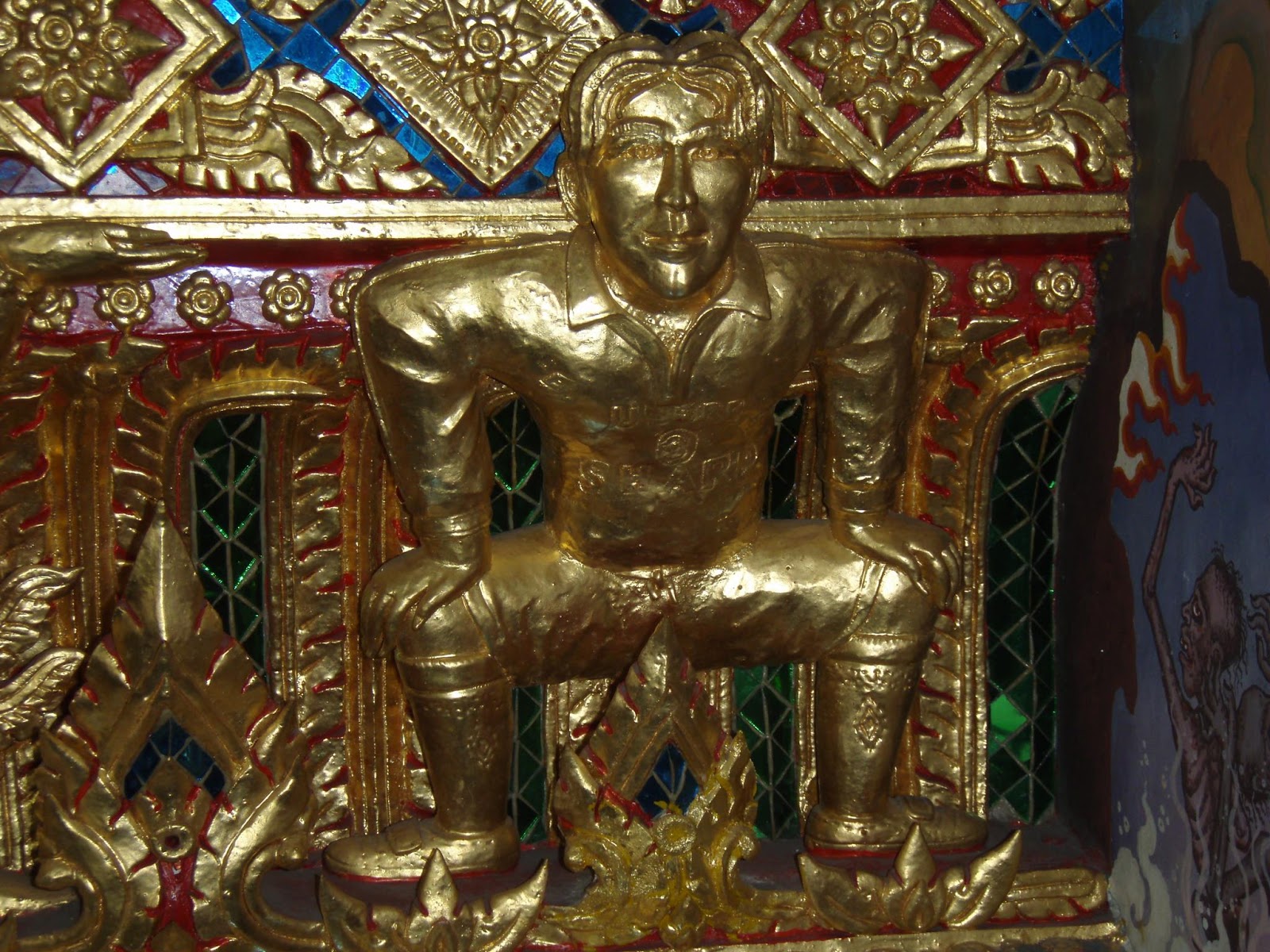 BRTなる物に初めて乗ったが中国製らしい車体も新品、運転もおとなしい、走行レーンも専用(らしい)、専用信号、渋滞だらけのバンコクで渋滞がないとなればタイにしては画期的(?)、観光客にとってはあまりメリットはなさそうな路線のような気がする。 サートンから一本でベッカム寺の門前まで行けるので利用してやって下さい、このベッカム寺だが門を入ってお坊さんにベッカムの居所を訊いても皆知らない、本堂らしき建物は鍵が掛かっていて入れない、階下にいた尼さんも知らない、本堂に入れないのか訊いてみるとワン・プラ(仏の日)しか開けないとの事、どうにかならないかとシツコク尋ねた所、隣の建物に説教をしているお坊さんがいるから訊いてみるといいと教えてくれた、そのお坊さんとしばらく世間話などして本堂を開けてもらえないか?と切り出しだ所快くOK、鍵を持った男と一緒に本堂へ、いましたよベッカムが、何でここにベッカムがいるんだ?このお寺とベッカムとの関係は? サッカーやベッカム好きは是非お参りして下さい、テロリストは3月のビン・ラディン寺へどうぞ。 |