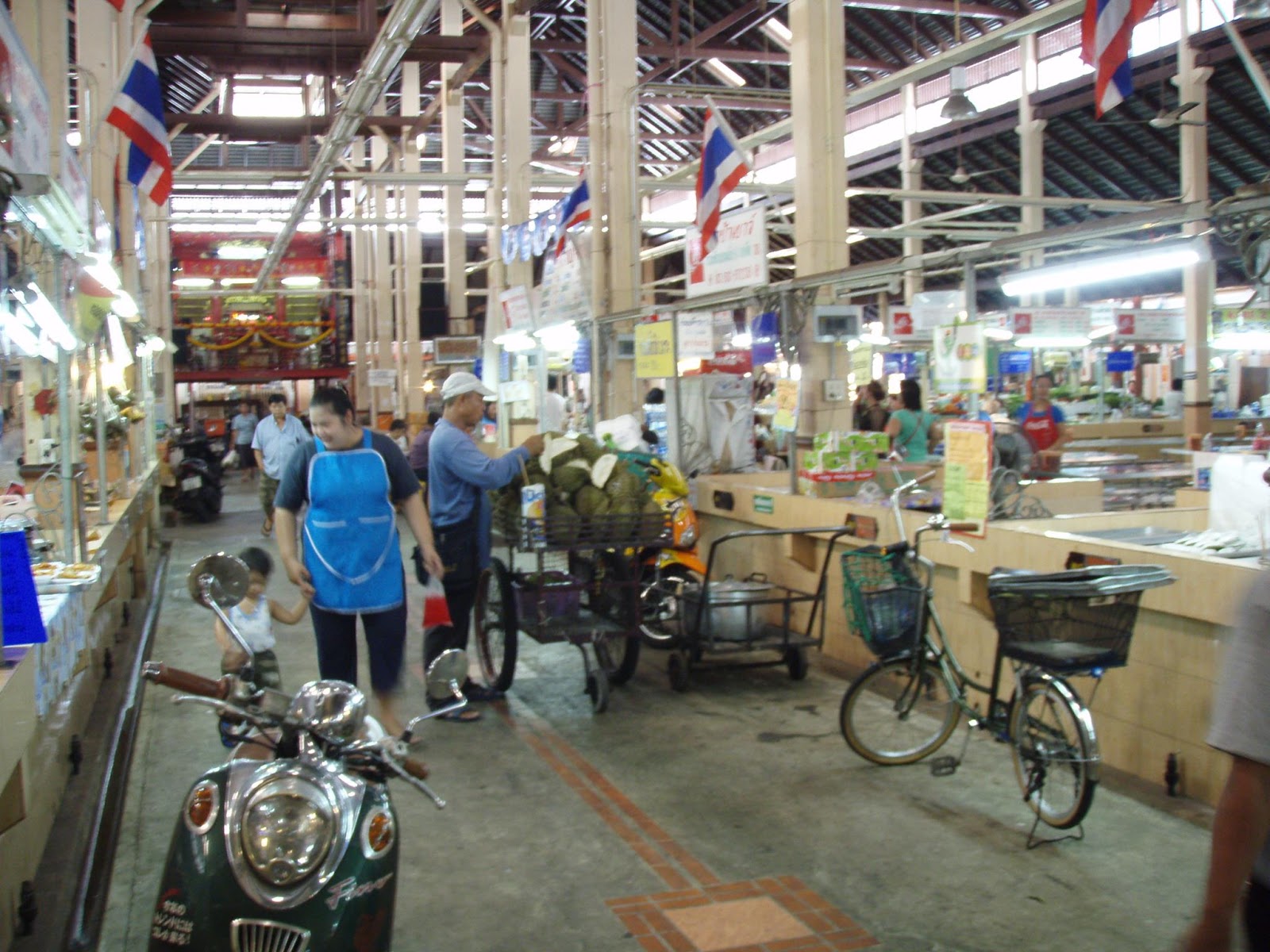 ナコンサワン通りに面したナンルン市場入り口と内部、全く古さはない普通の市場。 |