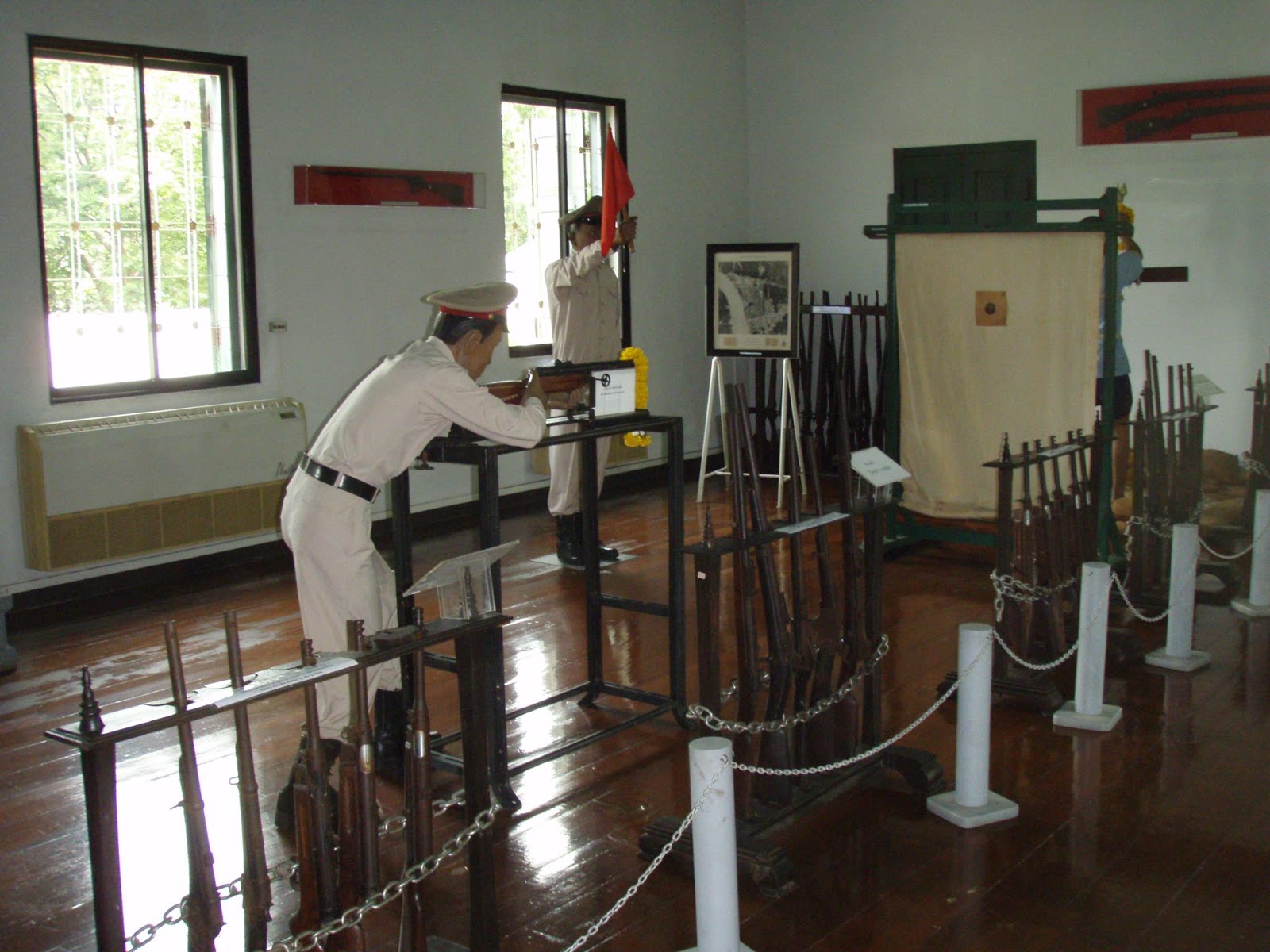| 元刑務所だった所が今は公園となっている、入場料無料刑務所跡地なので監視塔やら塀なども残っている、その昔死刑は首チョンパ、その後銃殺で今は?、館内の写真に最後の銃殺刑の処刑人の写真があった、拷問の様子も多数展示されているのだが、ご当地タイならではの物もあり笑える(拷問される方はたまったものではないが)、それが右下の写真、籐で出来た人間を入れられるくらい大きいセパタクロー、内側に向けて釘の様なものが出ている、この中に罪人を押し込んで象に蹴らせたらしい。 | |