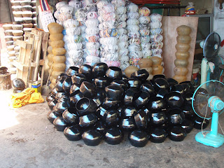 ワット・サケー(プー・カオ・トン)の南にその名も鉢通り(ソイ・バーン・バート)があって昔から托鉢用の鉢を作っている。 作るのはむずかしいと言っていたが、そんなにむずかしいとは思えない、鉄板を切り貼りして形を整えてナマン(油)を塗り乾いたら弱火で焼くと黒くなる、冷めたら磨いて出来上がり。 |