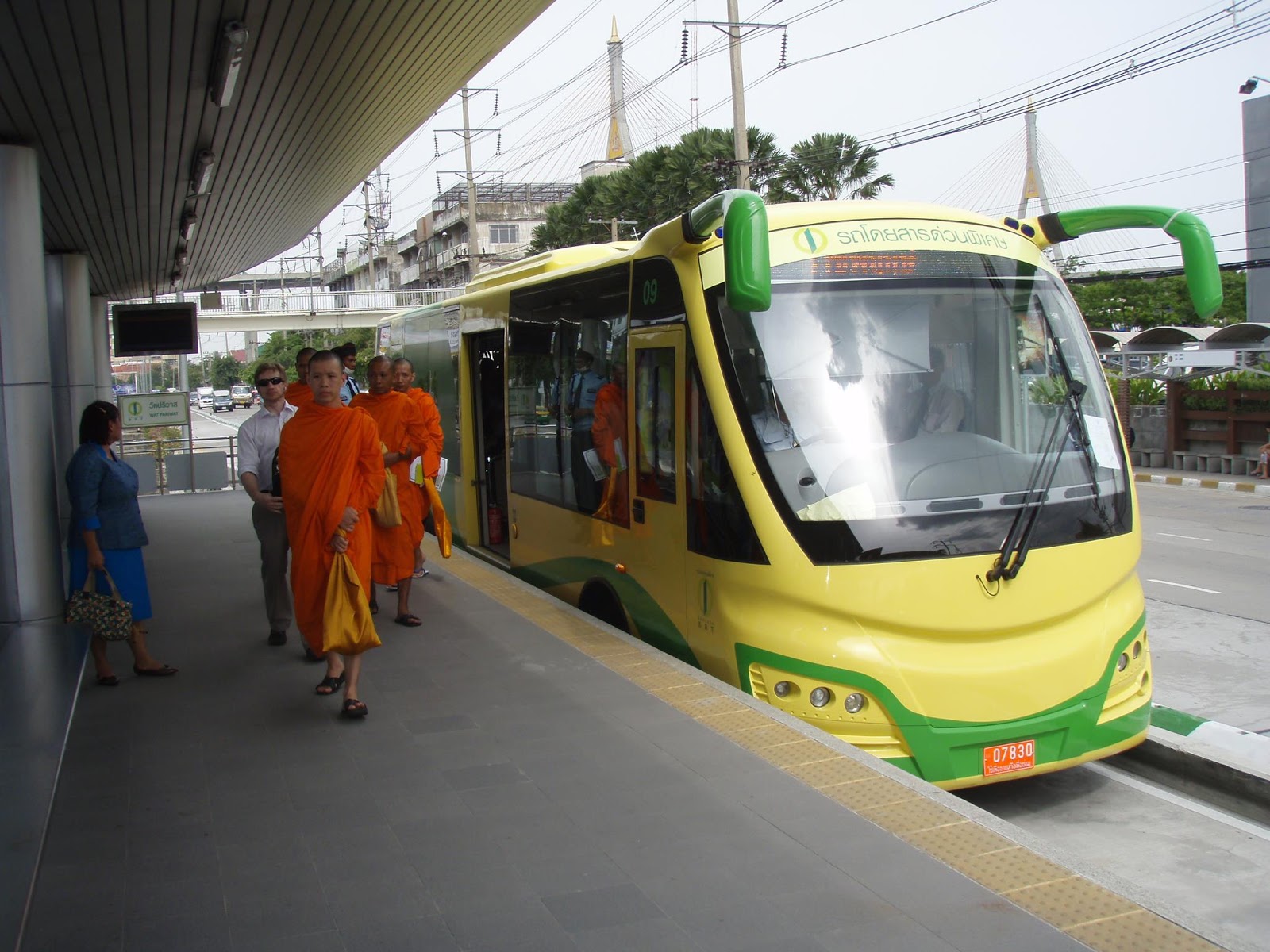 | 矯正博物館を出てブラブラと南下しパフラットのインド人街をうろついて、日本人納骨堂があるワット・リアップを横目に桟橋へメモリアル・ブリッジの袂の桟橋からWat Vorachanyawasまでの船旅、Wat Vorachanyawasで下船するとお寺の中を通り抜けてチャランクルンへ出て22番バスを待つ、その昔、ソイ・サパン・クー(ルンピニ公園そば)に住んで居た時にこのバスで通勤していた、当時駐在員はバスに乗ってはいけなかったが私は現地採用だったので関係なし、渋滞もなし、信号もなしでまあまあ快適だったが運転の荒いのは今と変わらない、懐かしいなぁ40年も前の話だ、そうこうしているうちにタノントクでバスは左折する、適当な所で降りたのだが丁度目の前にBRTの駅Charoenratがある、今は試運転中で無料。 | |