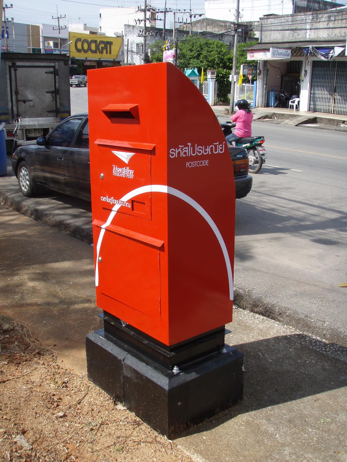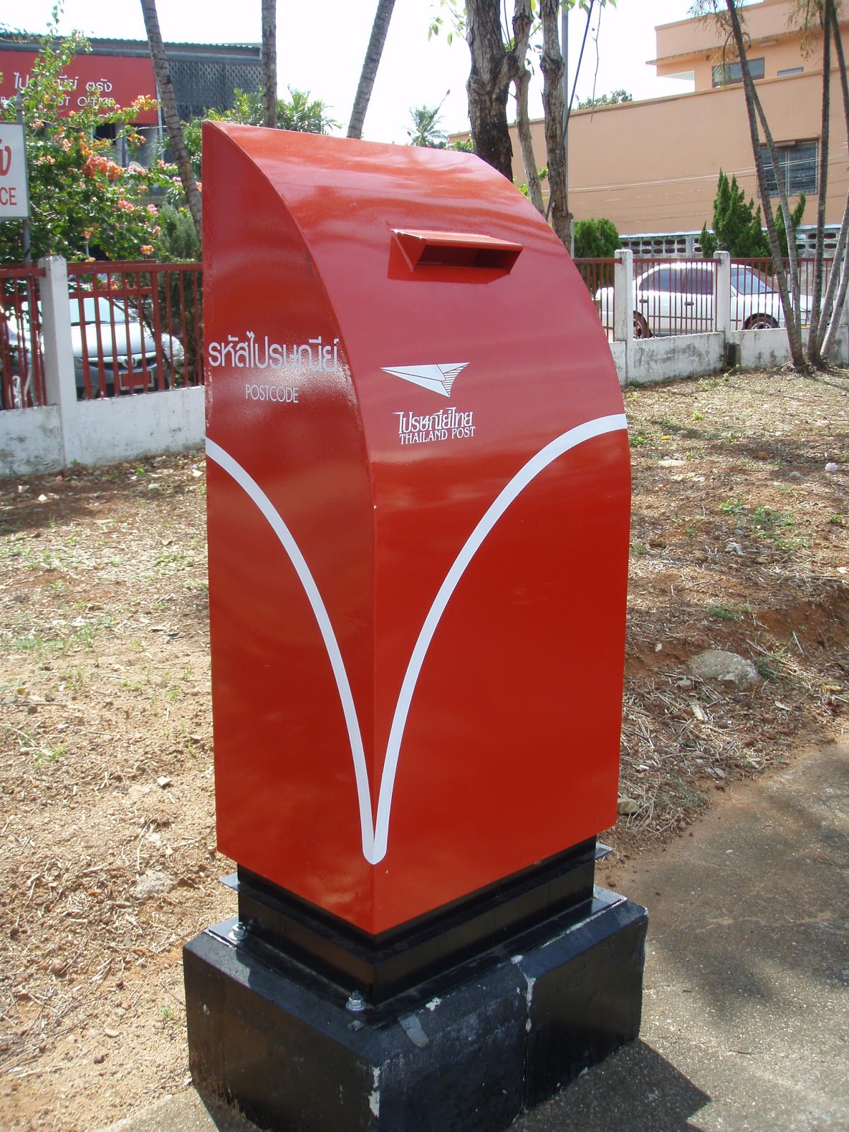 トランの郵便局前に新しい形のポストが設置された、トランのポストだけかと思っていたら、バンコクの切手博物館横にこの形のポストがずらりと並んだ写真があった、全国的にこの形になるようだ、やたら古いポストを使っている地域もあるが、現在使われている標準的なポストでまだまだ交換しなくてもと思うのだが、どこかで交換したがっている人がいるのだろう。 |