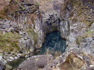 | そして高千穂峡へ。 ここは阿蘇山系の溶岩が流れ出たものが 数万年かけて侵食されてできたらしい。 |