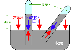 大気圧の大きさ=水銀柱の重さによる圧力1気圧=760mmHg