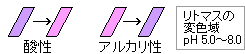 リトマス試験紙 酸性では青→赤 アルカリ性では赤→青 |