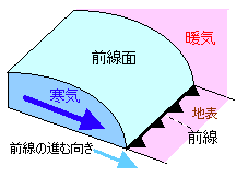 前線面…両気団の接触面 前線…前線面と地表が交わった部分の線